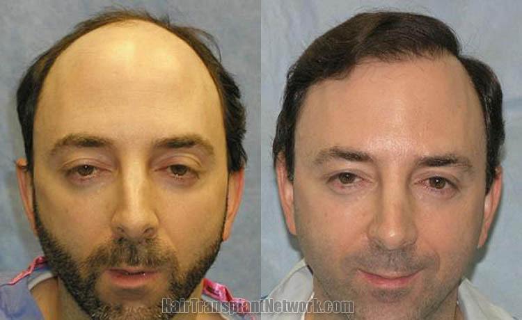 Bernstein Medical - Center for Hair Restoration Patient FYF is a Norwood Class 5A, with black, straight, medium fine hair and a donor density of 2.0. Results after two hair transplant sessions totaling 4,098 follicular unit grafts.